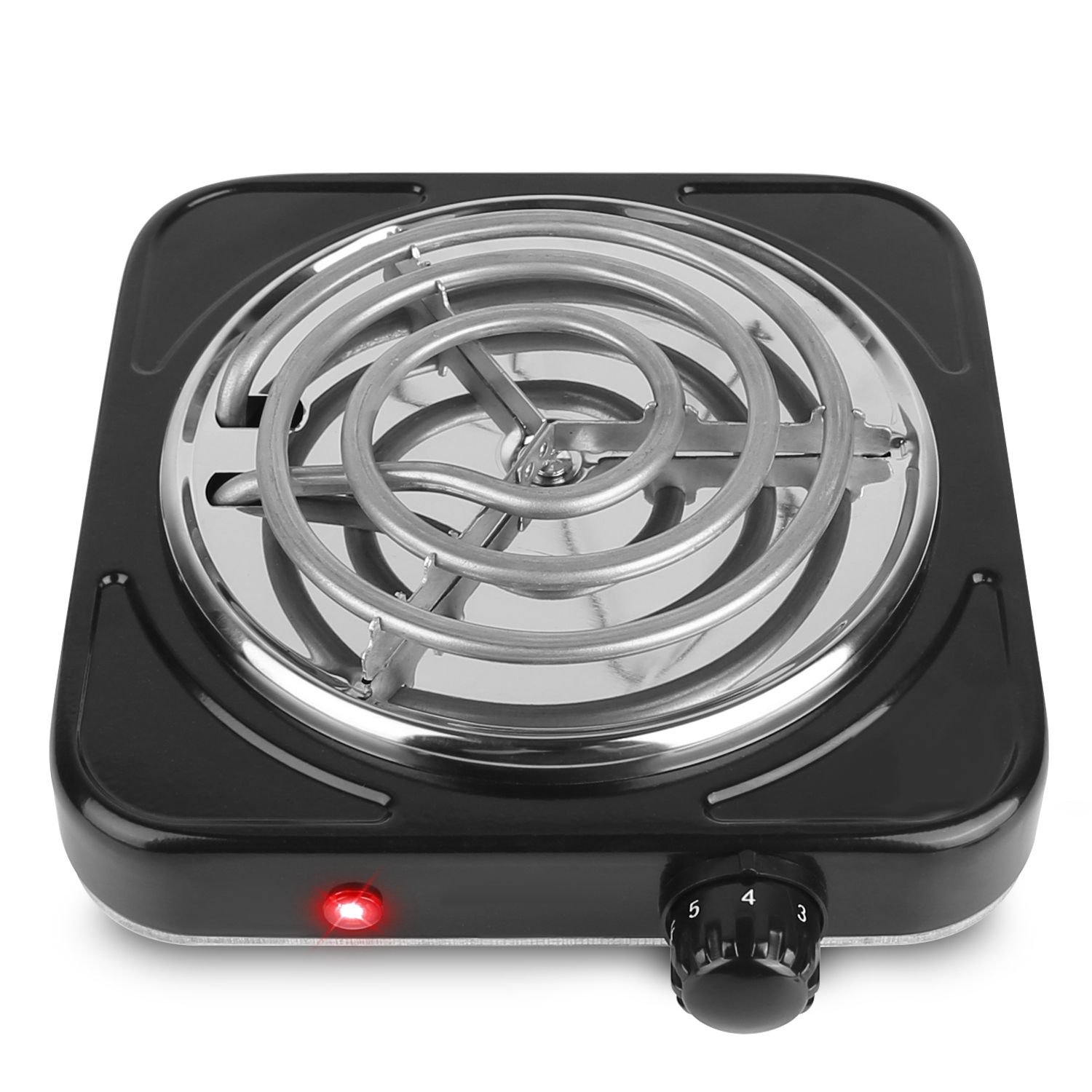 Home > 1000W Electric Single Burner Portable Coil Heating Hot Plate Stove Countertop RV Hotplate with Non Slip Rubber Feet 5 Temperature Adjustments